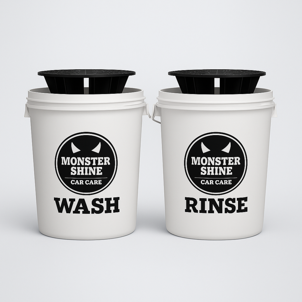 2 X 20L Buckets & Lids 2 Grit Guard 1 WASH Vinyl Label 1 RINSE Vinyl Label The 2 bucket method is used as part of a safe wash to minimise the risk of swirling and wash marring. Add your Soor Apple Car Shampoo to the wash bucket and top with water (blast under...